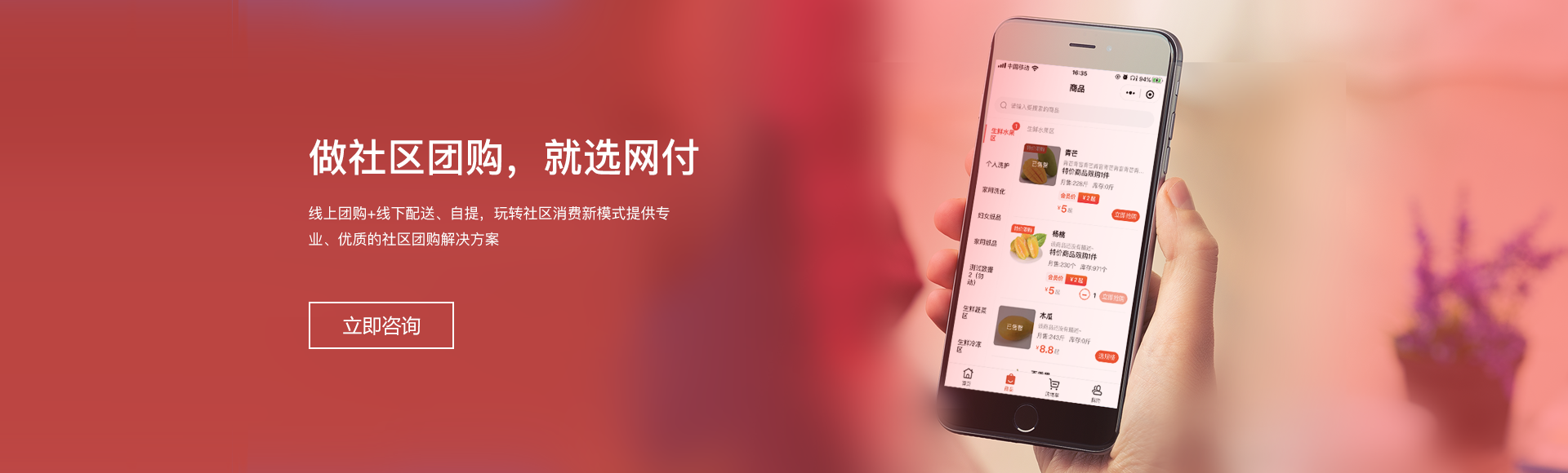 网付通过成熟的技术,帮你快速搭建社区团购平台,抢占社区消费红利!